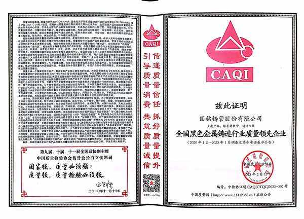 在半個多世紀的崢嶸歲月中,國銘鑄管依托雄厚實力和專業(yè)技術(shù)品質(zhì),堅持“技術(shù)提升質(zhì)量,品質(zhì)鑄就品牌,創(chuàng)新推動發(fā)展”的企業(yè)宗旨,為客戶提供滿意的產(chǎn)品和服務(wù)